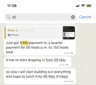 I have a friend of mine Peter who never generated leads before and did $35k his first month with 1 client.
