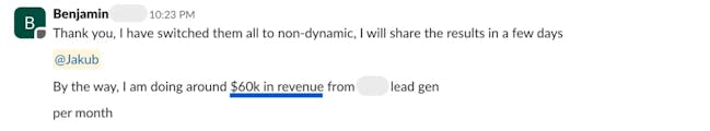 He mentioned he's making $60k/m with 1 client, working 20-30 mins a day on it.