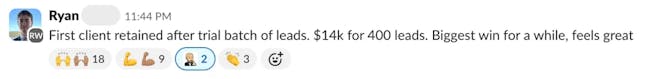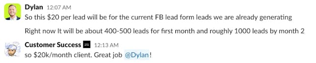 Last week I closed my first deal for 3k up front for a trial leads package. The fit was good, they wanted to scale and they paid straight after the first call.
