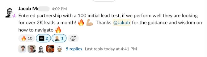Entered partnership with a 100 initial lead test, if we perform well, they are looking for over 2K leads a month!