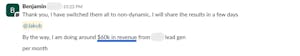 Results achieved: $60.3k/m with first client, now up to 6 clients