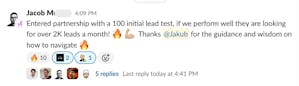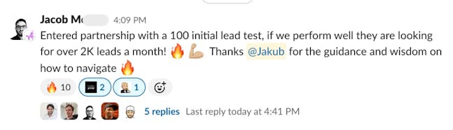 Entered partnership with a 100 initial lead test, if we perform well, they are looking for over 2K leads a month!